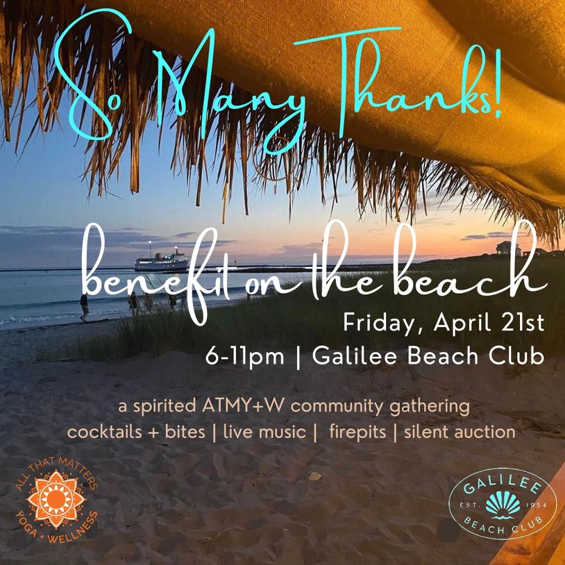 This event was a fundraiser for All That Matters yoga + wellness, a nonprofit 501 (c)(3), supporting our mission of an expansive outreach within and beyond our studios to cultivate a community of connection, well-being and inner peace, one person at a time. Your ticket purchase is tax-deductible + helps our Lotus Fund